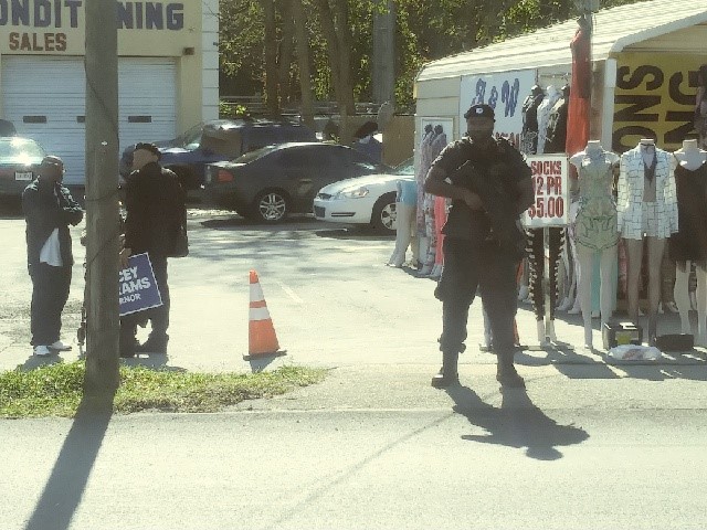 The group posted pictures of their campaigning on Facebook, calling it an “Armed Rally Against Voter Suppression.”