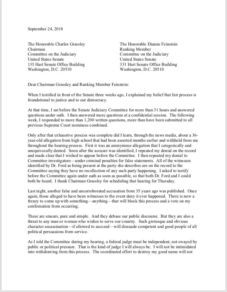 Kavanaugh Statement: ‘I Will Not Be Intimidated into Withdrawing’